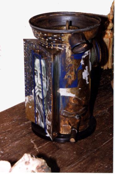 Torpille Vermorel, collages, acrylique, dorure